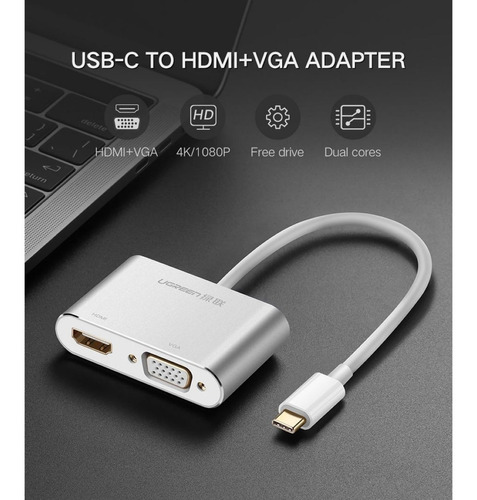 Adaptador Ugreen Tipo C a HDMI + VGA hembra. Ampliá todas tus opciones con la mejor calidad.