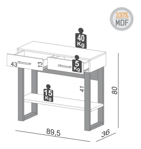 La mesa de Arrime Industrial Seattle, es una pieza multifunción que aplica tanto a un acceso o recibidor, como al living, sala de estar, dormitorio, pasillos, distribuidor o cualquier otro espacio reducido, ya que sus dimensiones compactas la hacen perfecta para apoyar y guardar desde llaves a objetos electronicos o de uso diario.