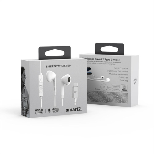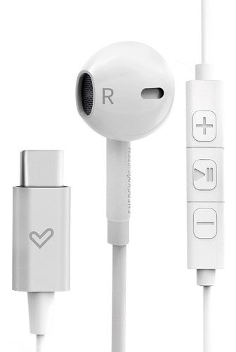 Auriculares de botón con diseño ergonómico y ligero. Conexión Tipo C y conversor digital integrado para un sonido HD. Micrófono y controlador de 3 botones para la música y el volumen.