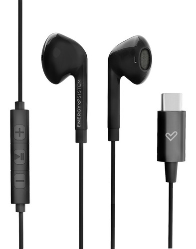 Auriculares de botón con diseño ergonómico y ligero. Conexión Tipo C y conversor digital integrado para un sonido HD. Micrófono y controlador de 3 botones para la música y el volumen.