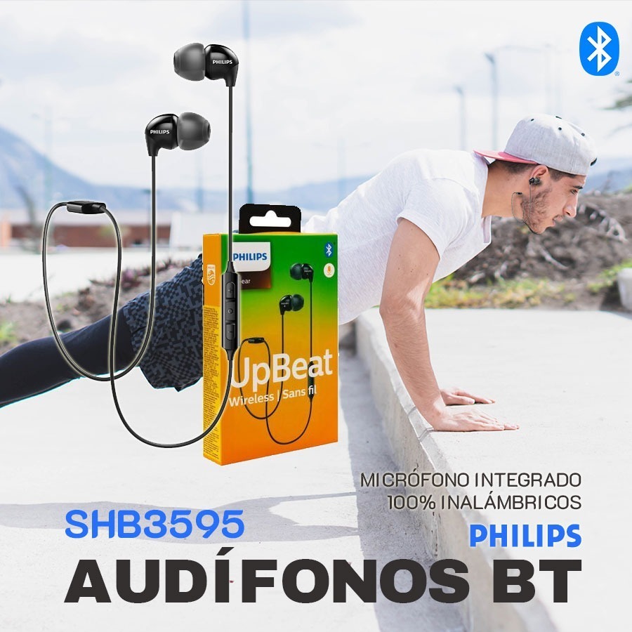 Libertad inalámbrica, potente sonido. Los auriculares compactos SHB3595 con Bluetooth entregan un sonido potente para disfrutar de hasta 6 horas de música inalámbrica. Solución portátil de uso cómodo.