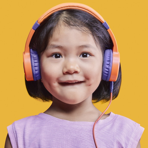 Auriculares para niños y niñas diseñados para disfrutar de la música, contenido multimedia y poder compartir la experiencia con «Music Share». La limitación de volumen a 85dB protege la salud auditiva de los niñ@s. Cable extraíble con micrófono incluido.