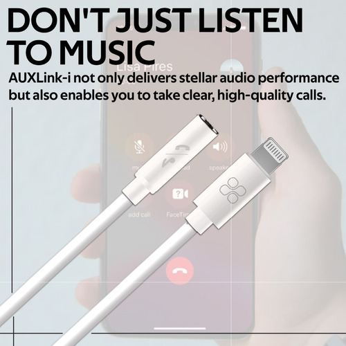 AUXLink-i te permite conectar tus auriculares o tapones para los oídos de 3,5 mm para escuchar música o responder a llamadas telefónicas.