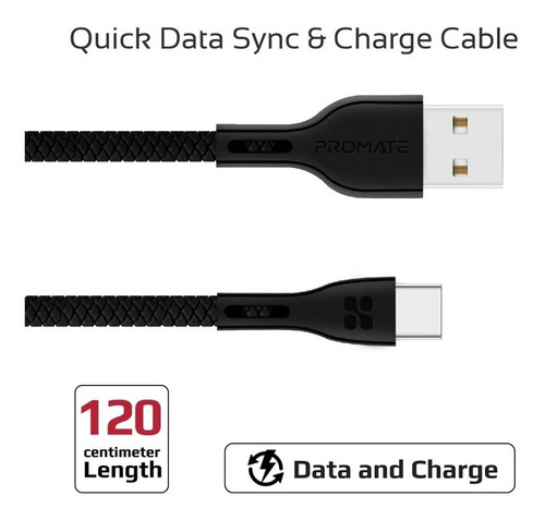 Cable Usb C 1,2m Promate Powerbeam-c Negro Celu Backup