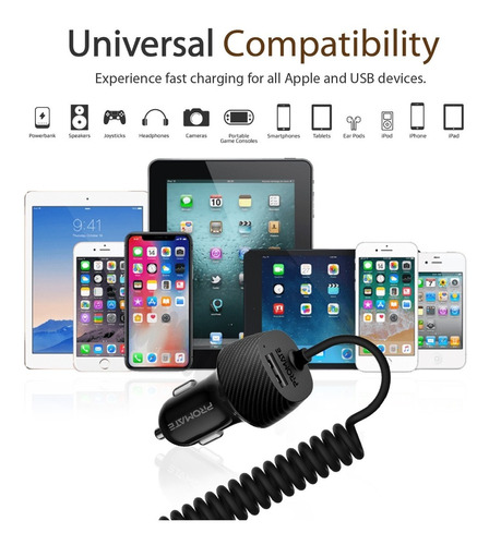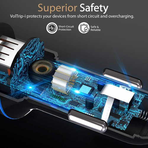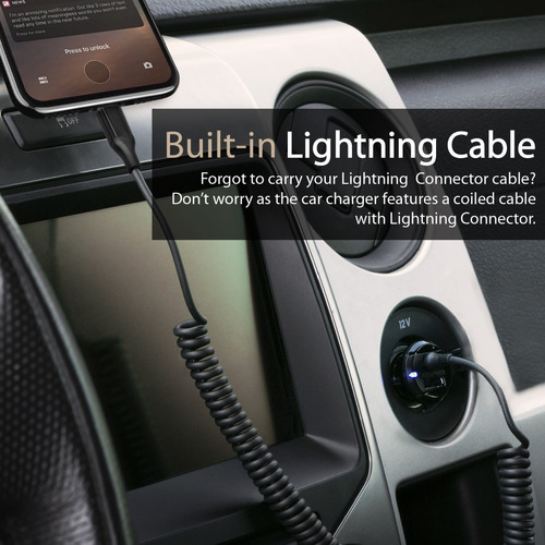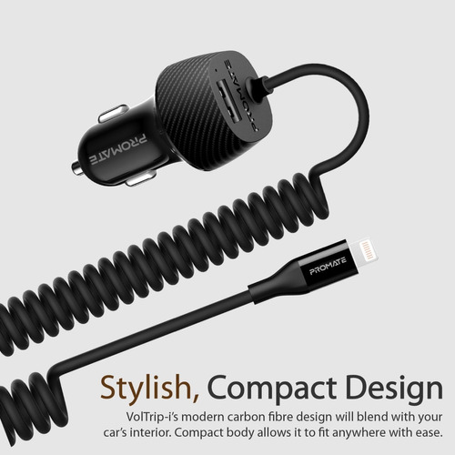 Voltrip-i es un cargador de coche de 3,4A con un cable Lightning incorporado y un puerto de carga USB que asegura que nunca se agote la batería mientras se conduce.