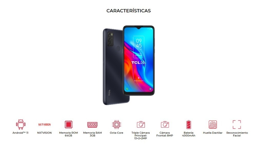 Celular TCL 20E triple cámara, tecnología NXTVISION y batería de 4000mAh, para obtener una experiencia de usuario única.