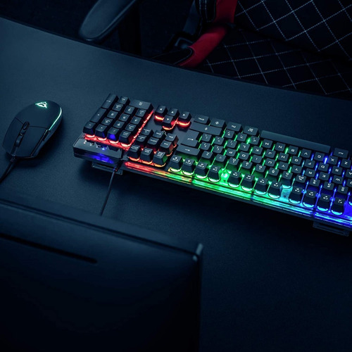 El teclado y ratón GXT 838 Azor funciona con todos los PC y portátiles: basta con conectarlos y empezar a jugar. Ajustando el teclado a la altura correcta con los pies de goma antideslizantes ya se puede empezar a jugar a todo color: el teclado se suministra con modos de color LED con brillo ajustable.