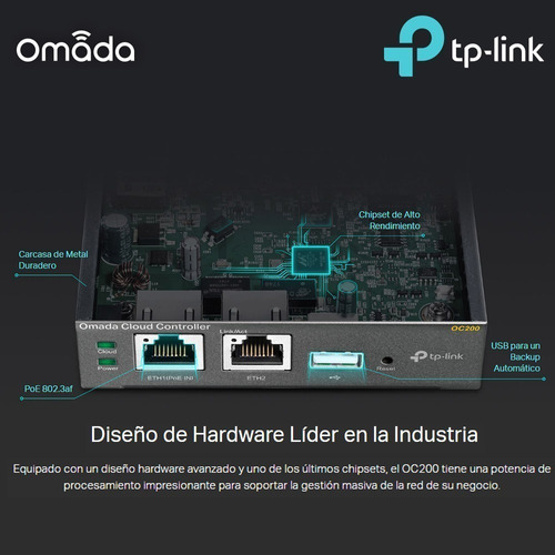 El controlador Cloud Omada OC200, te permite hacer uso de todas las funcionalidades del software Omada sin necesidad de correrlo en un computador, ofreciéndote gestión centralizada de las redes WiFi, además te ofrece un acceso cloud gratuito, para utilizarlo desde donde y cuando prefieras, dispone de conexión PoE (802.3af/802.3at), para facilitar su instalación, Su diseño de hardware líder en la industria con chipset poderoso, caja metálica de alta resistencia y puerto USB para backup automático, puedes utilizar la App de Omada para una gestión más dinámica y entre las muchas funcionalidades que posee te ofrece una red de invitados segura con múltiples opciones de logueo (Facebook Wi-Fi, SMS login, Vourcher)