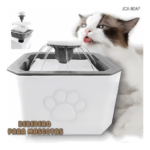 Fuente Agua Mascotas Bebedero Cascada Perro Gato 19x19x17cm