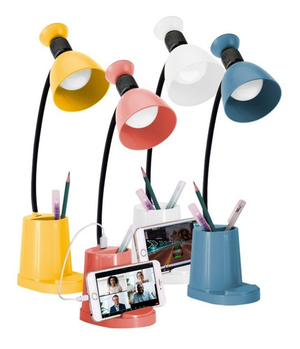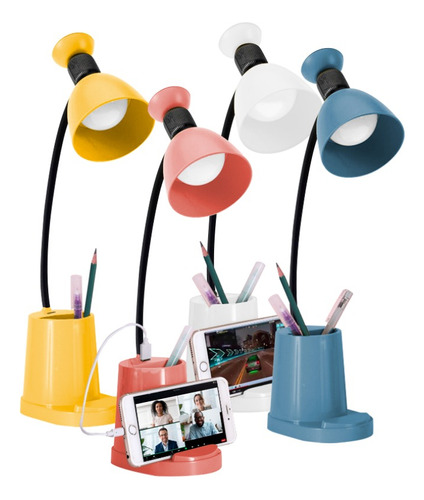 Lampara Escritorio Led Con Cargador Portalapices Usb Backup