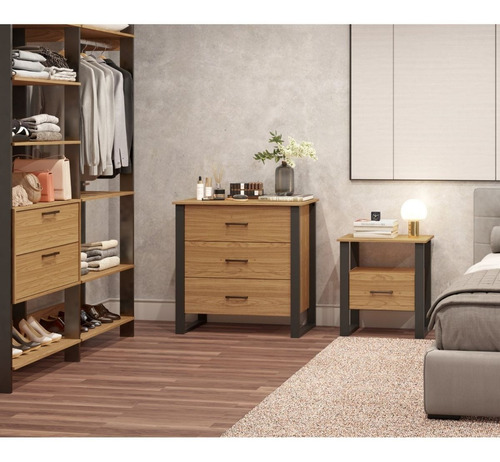 Mesa De Luz Madera 1 Cajon Bristol 60x35x65cm 100% Mdf Negro