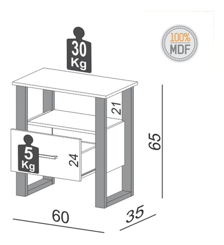 Be the first to review “Mesa De Luz Madera 1 Cajon Bristol 60x35x65cm 100% Mdf Negro”