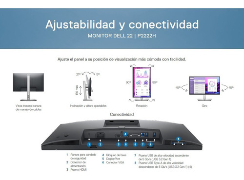 Ajuste a su comodidad: haga girar sobre su eje, incline y ajuste la altura del monitor a una configuración cómoda para todo el día. O seleccione entre una variedad de montajes y base s, incluido VESA, para una mayor flexibilidad.