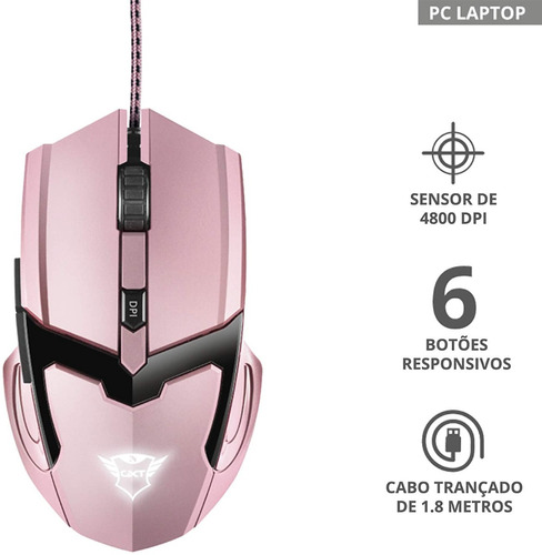 Mouse para PC y portátil (6 botones, 600-4800 ppp), color rosa. Compatible con Windows, Mac OS, Chrome OS
