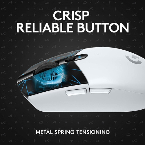En Logitech G, un mouse inalámbrico para juegos no tiene que ser pesado. G305 es muy ligero, apenas pesa 99 gramos. Esto fue posible gracias al diseño mecánico ligero y al uso ultraeficiente de la batería.