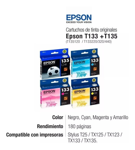 Juego Cartuchos Originales Epson T135 + T133. ¡Lleva los 4 colores con un solo Clic y ENVÍO GRATIS!