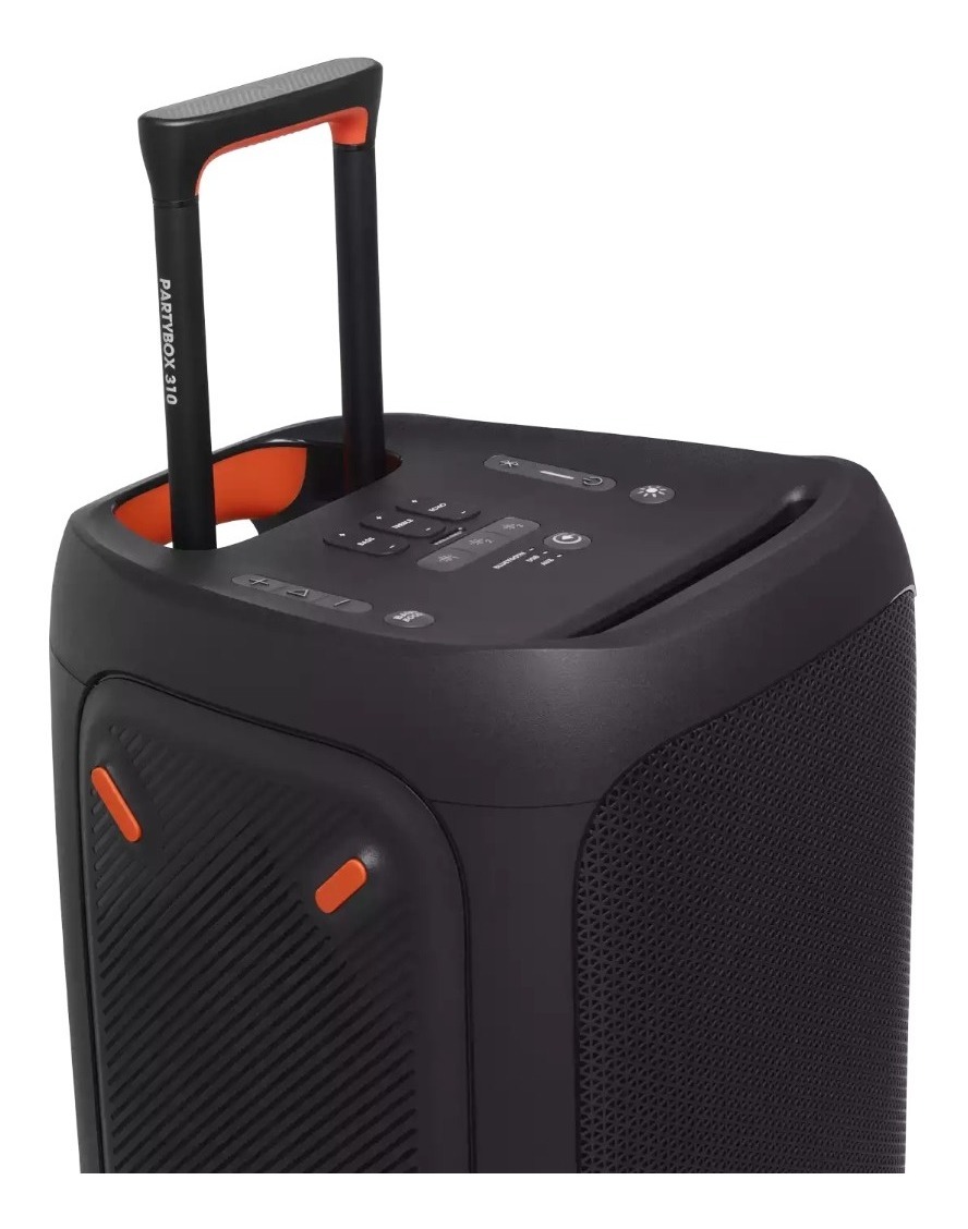 Su contundente sonido, deslumbrante iluminación e increíble potencia hacen que este altavoz destaque sobre la multitud. El JBL PartyBox 310 incluye toda la fiesta en un equipo transportable y a prueba de salpicaduras sin rival. Llega y haz sonar tus listas de reproducción favoritas en cualquier lugar, desde encuentros informales en casa a fiestas con baile en la playa. Sube las vibraciones de la fiesta con 240 vatios de sonido JBL Signature y un show de luces sincronizado que marcha al ritmo de la música. Ponte en marcha y haz que la diversión dure toda la noche o acude a la fogata y aprovecha sus impresionantes 18 horas de duración de batería. Empieza la fiesta con el JBL PartyBox 310.