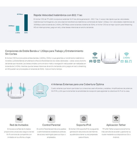 Router Inalámbrico de Doble Banda AC1200 – Archer C50