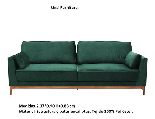Sofa 4 Cuerpos Tela Con 2 Almohadones Riñoneros Rayyan Verde