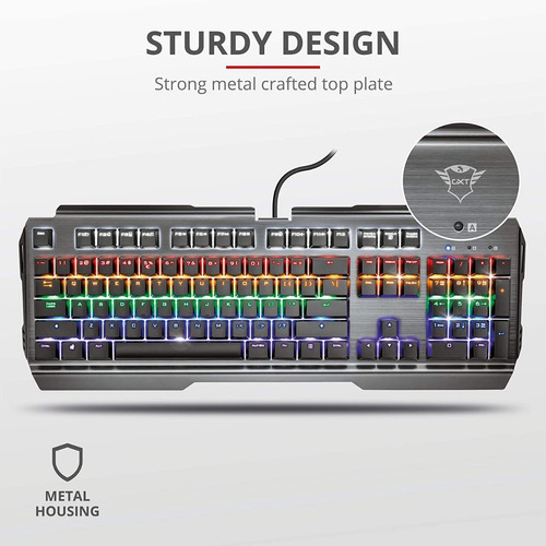 Teclado mecánico para gaming de diseño metálico, con interruptores de respuesta rápida y 8 modos de color