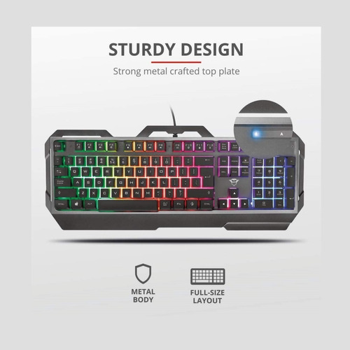 Concebido para el gaming de alto nivel, el teclado para gaming metálico Trust GXT 856 Torac combina la durabilidad con el aspecto práctico, añadiendo un toque de color con su asombrosa iluminación LED.