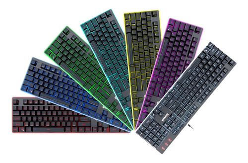 Teclado DYAUS K509 RGB Teclado de membrana con 7 colores de iluminacion pensado enteramente para mejorar tu calidad de juego. cuenta con teclado numerico y 12 teclas multimedia. Presenta una sólida construcción de aluminio y ABS de calidad aeronáutica con tapas de teclas moldeadas por inyección de doble disparo. El teclado ofrecen una sensación de teclado mecánico con menos resistencia y un recorrido de teclas corto, requieren menos trabajo para escribir y aún así brindan una respuesta táctil precisa para un rendimiento de juego impecable.