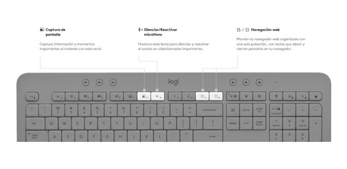Haz más cosas con un diseño de tamaño normal en Signature K650 que te permite usar las teclas de accesos directos requeridos y ahorrar tiempo con comandos como captura de pantalla, silenciar y reactivar micrófono, y navegación web.