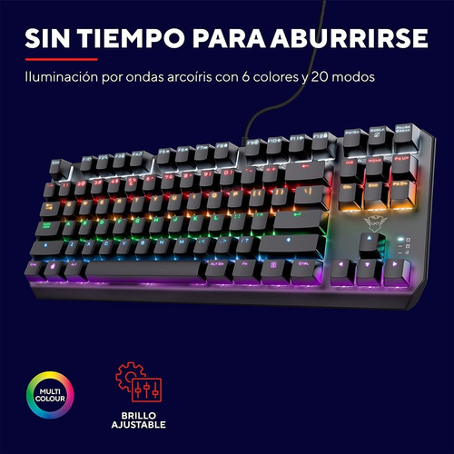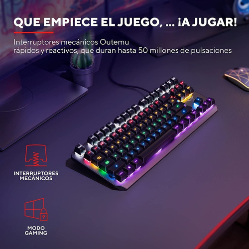 Teclado gaming TKL compacto con interruptores mecánicos e iluminación con onda de arco iris