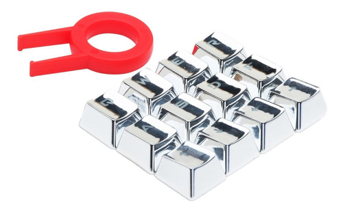 KEYCAPS PLATEADAS A103S 12 teclas intercambiables para teclados mecánicos, compatibles con estilo MX color rojo. Leyenda de letras transparentes grabadas en laser para durabilidad inigualable Moldeadas con inyección doble tiro, lo mejor del mercado, solo visto en teclas de grado militar.