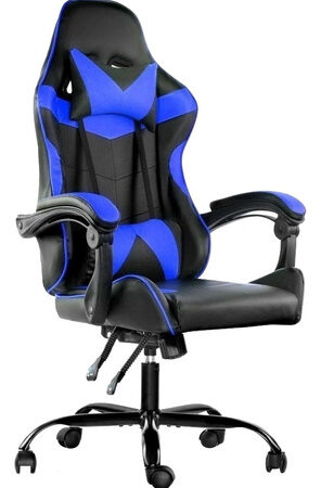 Silla De Escritorio Lumax Rom Gamer Ergonómica Negra Y Azul Con Tapizado De Piel Sintética