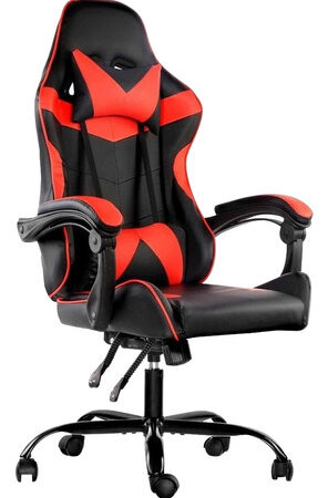 Silla De Escritorio Lumax Rom Gamer Ergonómica Negra Y Roja Con Tapizado De Piel Sintética