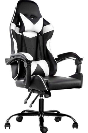 Silla De Escritorio Lumax Rom Gamer Ergonómica Negra Y Blanca Con Tapizado De Piel Sintética